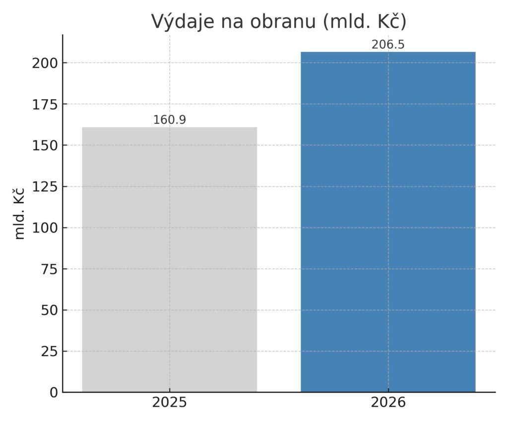 Významnou roli v rozpočtu hraje obrana. Výdaje na bezpečnost státu mají v roce 2026 dosáhnout 206,5 miliardy korun, což odpovídá 2,35 % HDP. Česko tak nejen plní závazek vůči NATO na 2 % HDP, ale přidává i 30,7 miliardy korun navíc. Tyto prostředky mají výjimku z fiskálních pravidel a vláda je obhajuje jako investici do bezpečnosti v době rostoucí mezinárodní nestability.