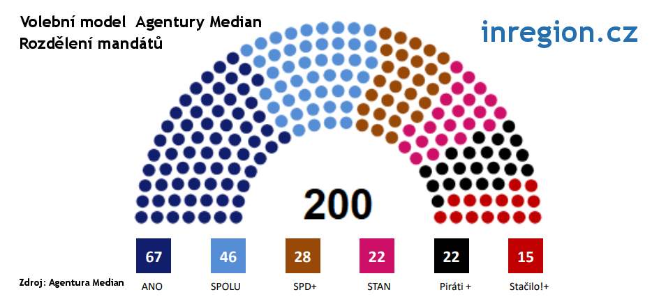 Podle dnes zveřejněného zářijového sněmovního volebního modelu agentury Median, by do Poslanecké sněmovny vstoupilo šest politických subjektů. Volební účast se odhaduje na 62,5 procenta. Úspěch by slavilo hnutí ANO, koalice SPOLU, SPD, STAN, Piráti se Zelenými a také hnutí Stačilo!.